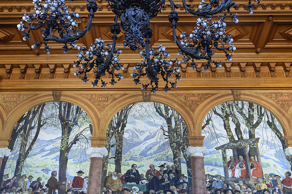 Les années 1393 à 1815 dominent le tableau monumental La Landsgemeinde d’Albert Welti.