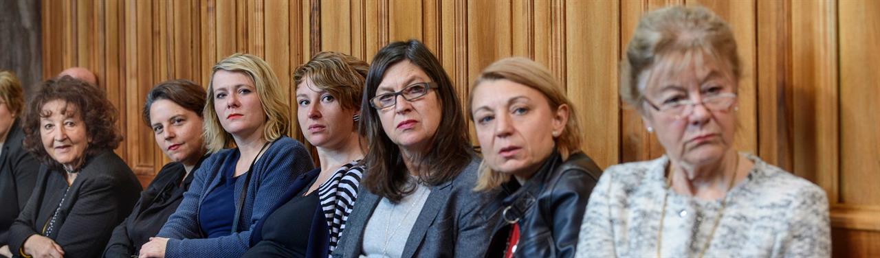 Photo d’en-tête: des conseillères nationales assistent au débat du 28 février 2018 au Conseil des Etats concernant l’égalité salariale.