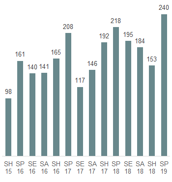 Légende: SH=Session d'hiver, SP=Session de printemps, SE=Session d'été, SA=Session d'automne
