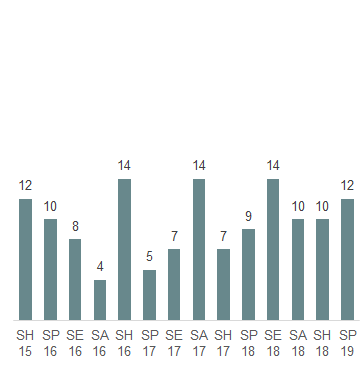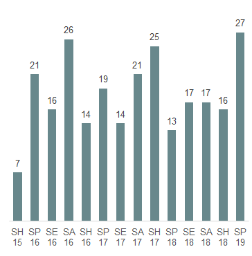 | Interpellation | 16 | 26 | 14 | 19 | 14 | 21 | 25 | 13 | 17 | 17 | 16 | 27 |
