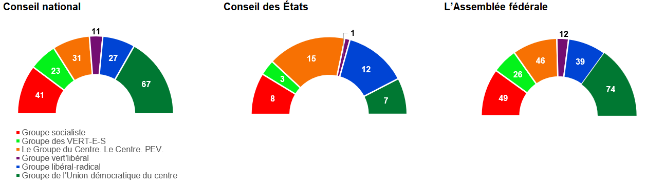 Nombre de parlementaires par groupe et par conseil (date de référence: 20.03.2026)