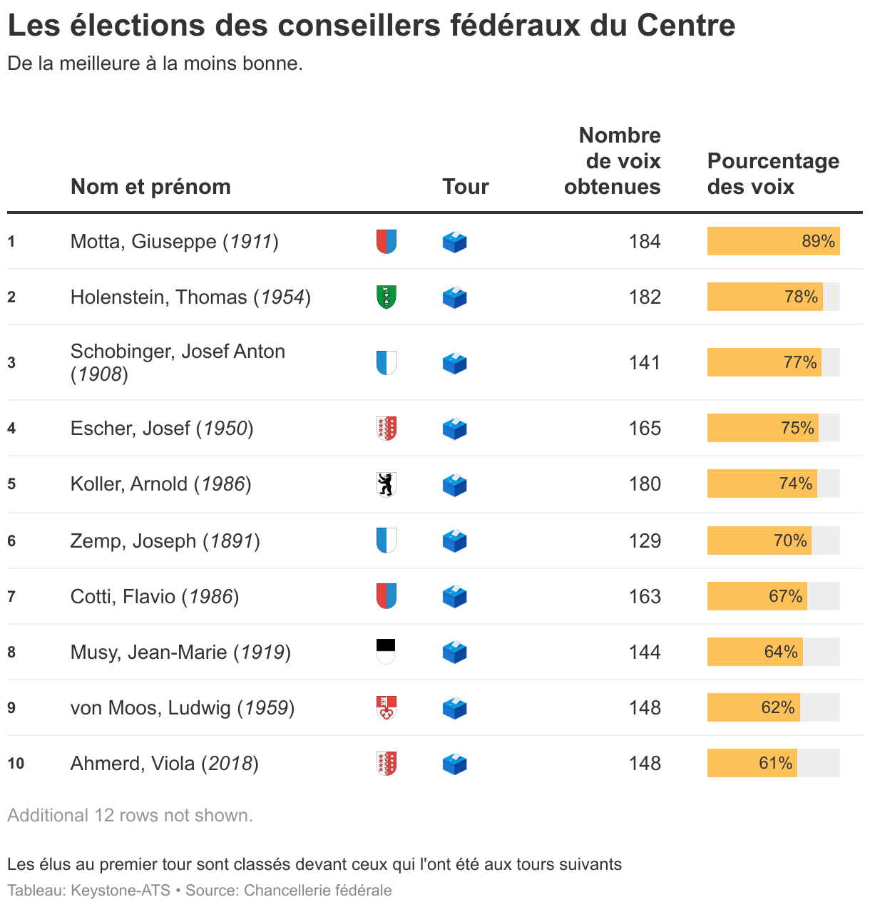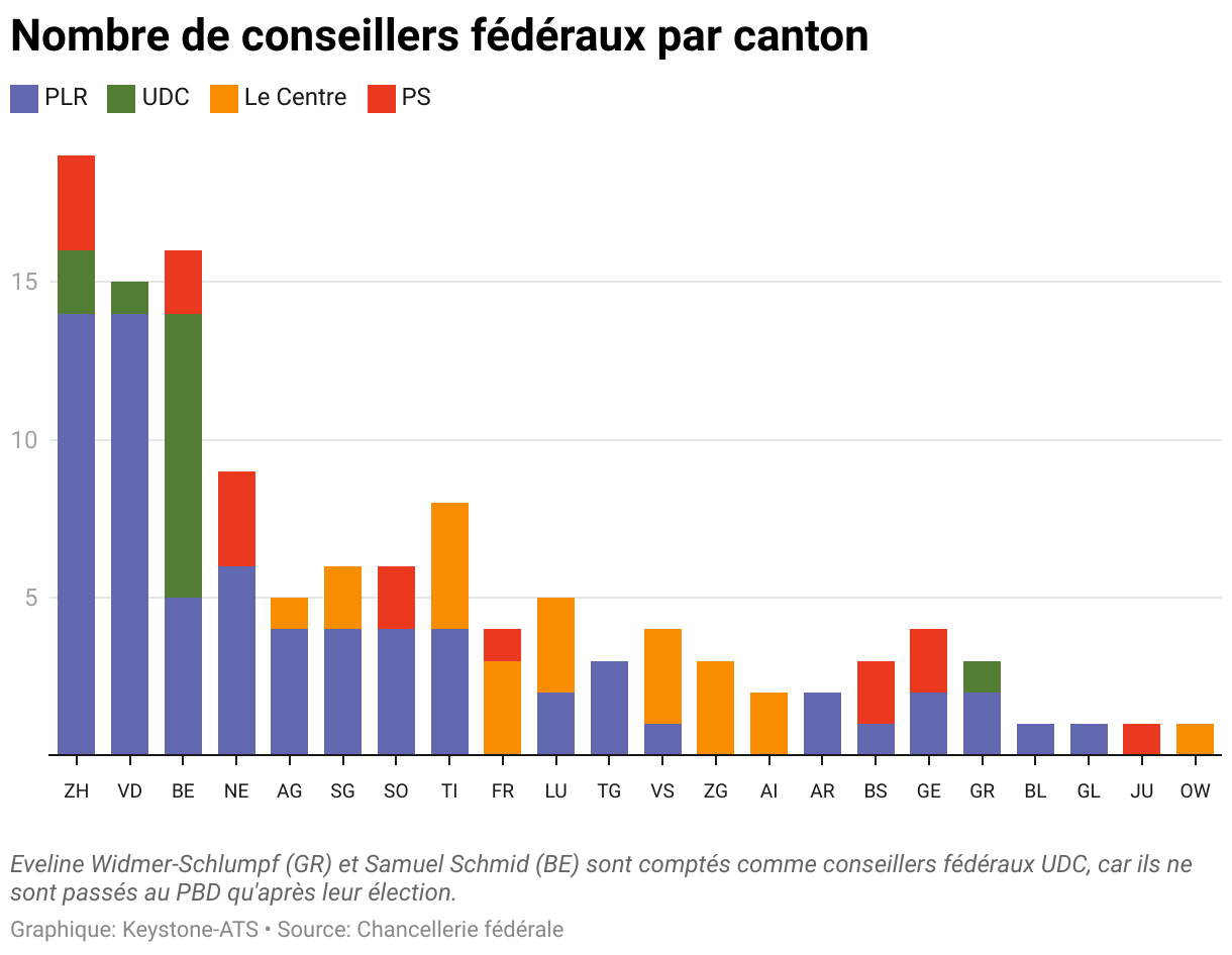 Nombre de conseillers fédéraux par canton
