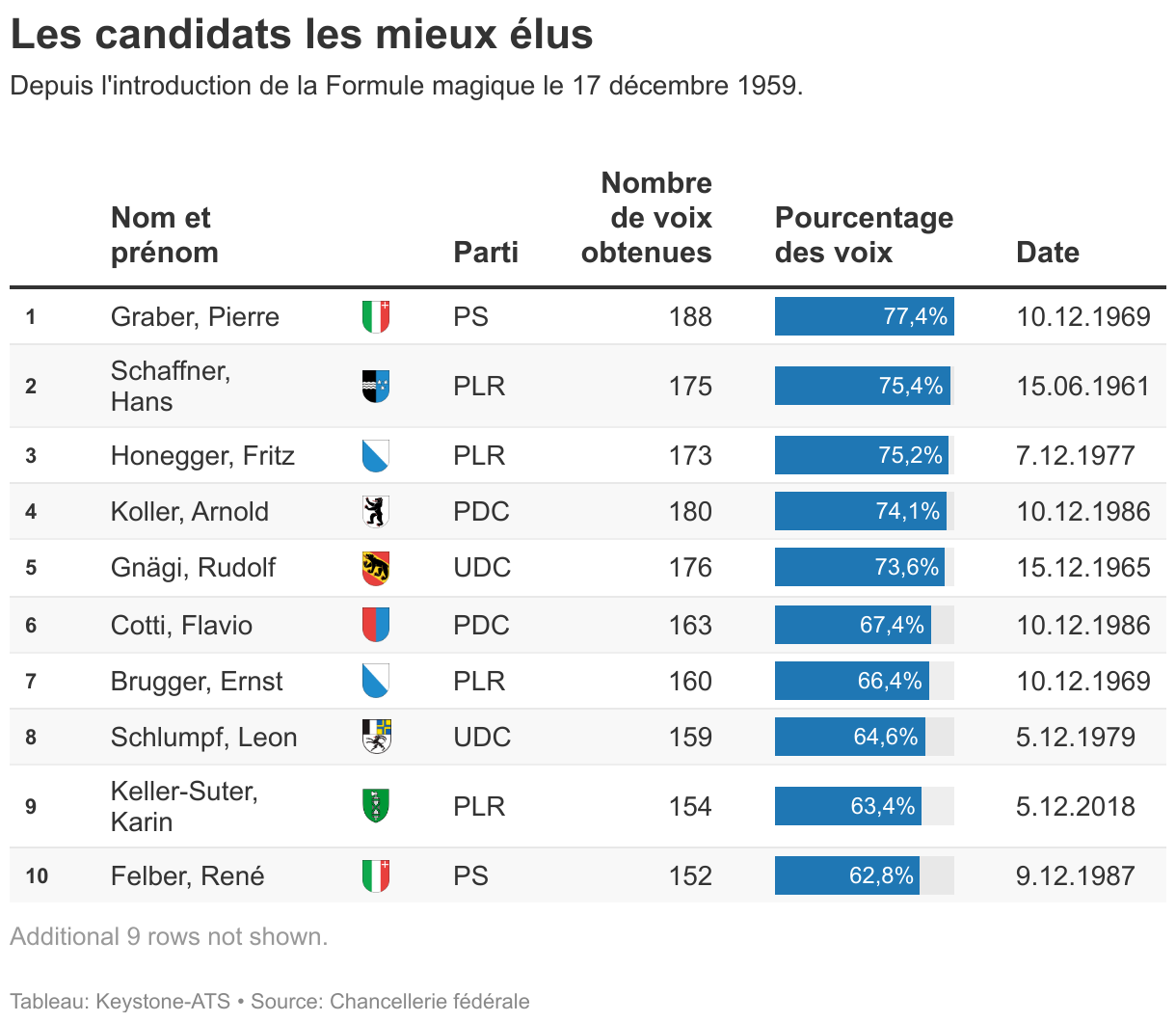 Les candidats les mieux élus