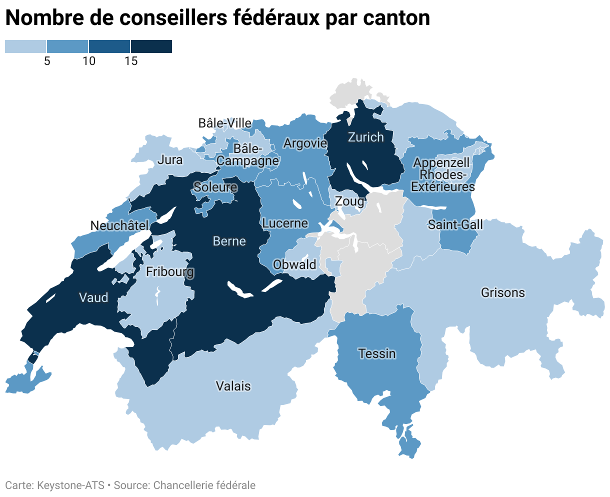 Nombre de conseillers fédéraux par canton (carte)