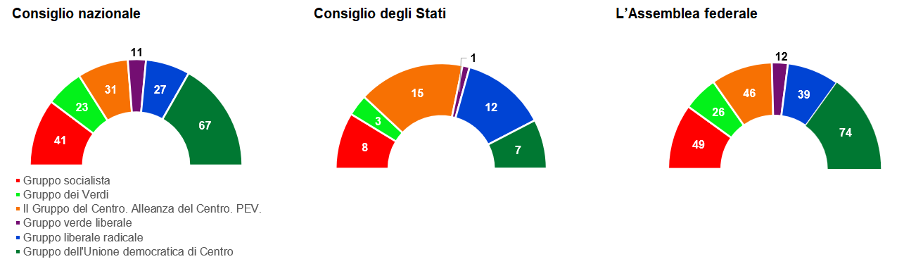 I deputati all'Assemblea federale si riuniscono in gruppi e non in partiti. I gruppi comprendono membri di un medesimo partito o di partiti con un orientamento simile.