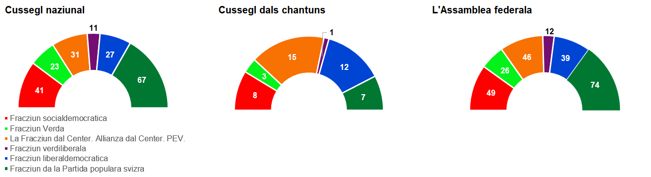 L'Assamblea federala è dividida en fracziuns e betg en partidas. Las fracziuns cumpiglian commembers da la medema partida u d'ina partida da medemas ideas. Ina fracziun n'è damai betg adina identica cun ina partida.